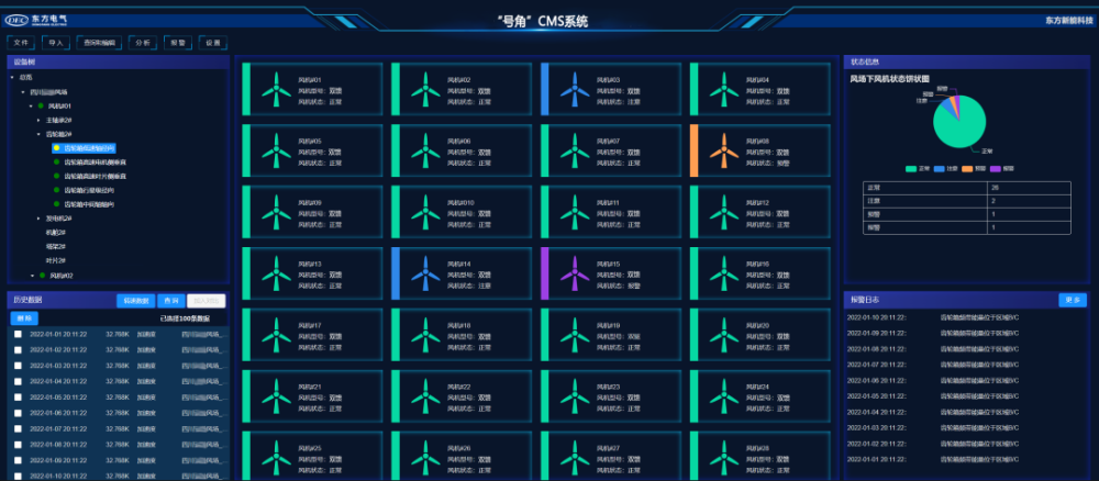 “號(hào)角”CMS系統(tǒng)是東方新能科技與東方研究院聯(lián)合攻關(guān),基于萬余臺(tái)風(fēng)電機(jī)組的運(yùn)行數(shù)據(jù)和運(yùn)維經(jīng)驗(yàn),針對(duì)風(fēng)電機(jī)組狀態(tài)監(jiān)測(cè)系統(tǒng)開發(fā)。該系統(tǒng)集成了數(shù)據(jù)管理、智能診斷、多維度統(tǒng)計(jì)預(yù)警、機(jī)器學(xué)習(xí)、專家服務(wù)等先進(jìn)算法和手段,具有硬件通用化、數(shù)據(jù)開放化、分析標(biāo)準(zhǔn)化等特點(diǎn),能夠與風(fēng)電機(jī)組主控系統(tǒng)直接通訊,實(shí)現(xiàn)實(shí)時(shí)監(jiān)測(cè)、自動(dòng)診斷和保護(hù)停機(jī)等功能。“號(hào)角”CMS系統(tǒng)與“哨塔”輕量化預(yù)警平臺(tái)、“新能智維”信息化系統(tǒng)一起,構(gòu)成東方新能科技智慧運(yùn)維體系。