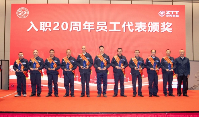 大會(huì)回顧了中天海纜二十年來(lái)的發(fā)展歷程,發(fā)布高壓海纜、高壓陸纜新產(chǎn)品新技術(shù)成果。會(huì)議表彰了在中天海纜奮斗20年的員工,薛濟(jì)萍為員工代表頒發(fā)履職20周年紀(jì)念獎(jiǎng)杯。