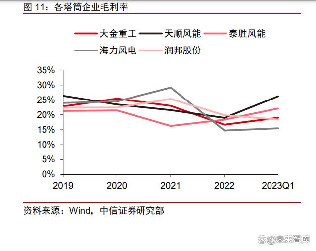 塔筒樁基存在提價預(yù)期,盈利能力有望改善。受益新增風(fēng)電裝機(jī)規(guī)模高增速和海風(fēng)項 目深遠(yuǎn)?;l(fā)展,風(fēng)電行業(yè)高景氣背景下塔筒樁基需求有望迎來高速增長。從年度維度看, 參考?xì)v史季節(jié)性因素,二季度塔筒交付旺季來臨,頭部企業(yè)訂單普遍已排至下半年,全年 產(chǎn)能利用率預(yù)計維持飽和狀態(tài)。從出貨增速維度看,預(yù)計各塔筒樁基企業(yè) 2023、2024 年 均保持較高增速,行業(yè)存在提價預(yù)期,加工費(fèi)有望上行,改善塔筒盈利能力。一季度頭部 企業(yè)業(yè)績已基本兌現(xiàn),盈利能力環(huán)比好轉(zhuǎn),隨著交付旺季的來臨和擴(kuò)產(chǎn)項目的落地,塔筒 樁基有望迎來量利齊升的快速發(fā)展期。