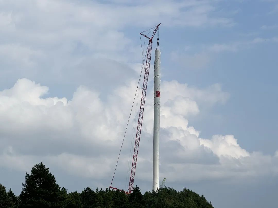 大唐貴州大風(fēng)坪34兆瓦技改項(xiàng)目塔筒順利吊裝完成