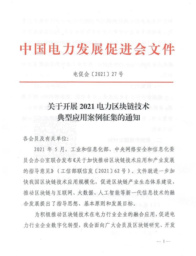 2021電力區(qū)塊鏈典型應(yīng)用案例征集通知