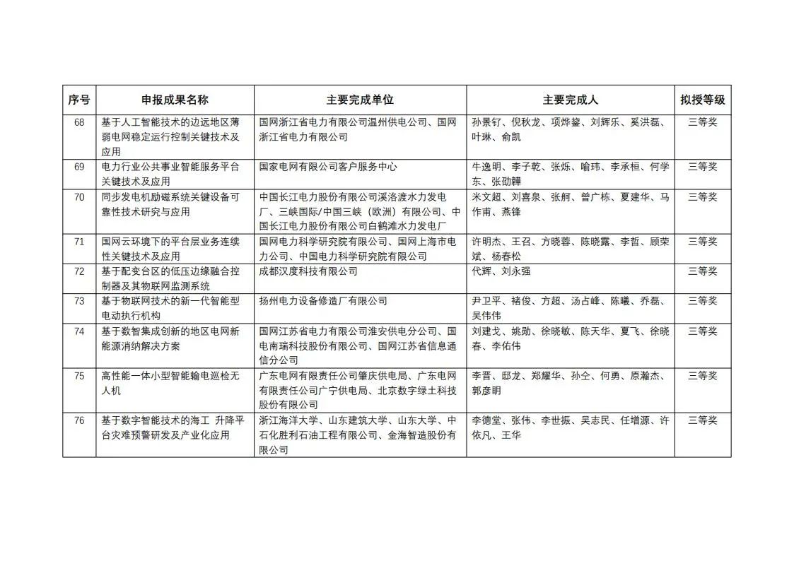 中國電力發(fā)展促進(jìn)會(huì)科學(xué)技術(shù)獎(jiǎng)2023年度擬授獎(jiǎng)成果公示