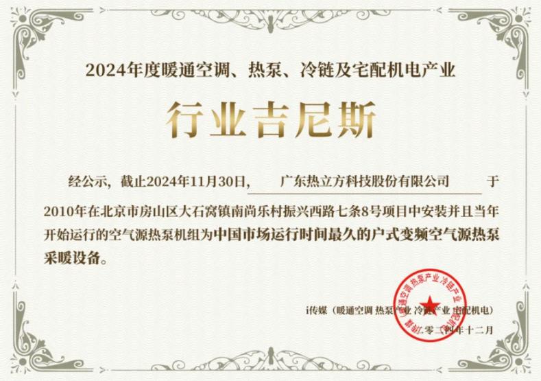 熱泵行業(yè)媒體i傳媒近日向熱立方地暖機(jī)頒發(fā)了一項(xiàng)榮譽(yù)——中國(guó)市場(chǎng)運(yùn)行時(shí)間最久的戶式變頻空氣源熱泵采暖設(shè)備。據(jù)了解,該設(shè)備于2010年在北京市房山區(qū)大石窩鎮(zhèn)南尚樂(lè)村振興西路七條8號(hào)項(xiàng)目中安裝,并且當(dāng)年開始運(yùn)行,歷經(jīng)15個(gè)供暖季后,依然穩(wěn)定運(yùn)行無(wú)故障,創(chuàng)造了中國(guó)市場(chǎng)運(yùn)行時(shí)長(zhǎng)的行業(yè)紀(jì)錄。該項(xiàng)檢測(cè)由“建筑環(huán)能科技有限公司建筑環(huán)境與能源檢測(cè)院”完成檢測(cè)認(rèn)證。