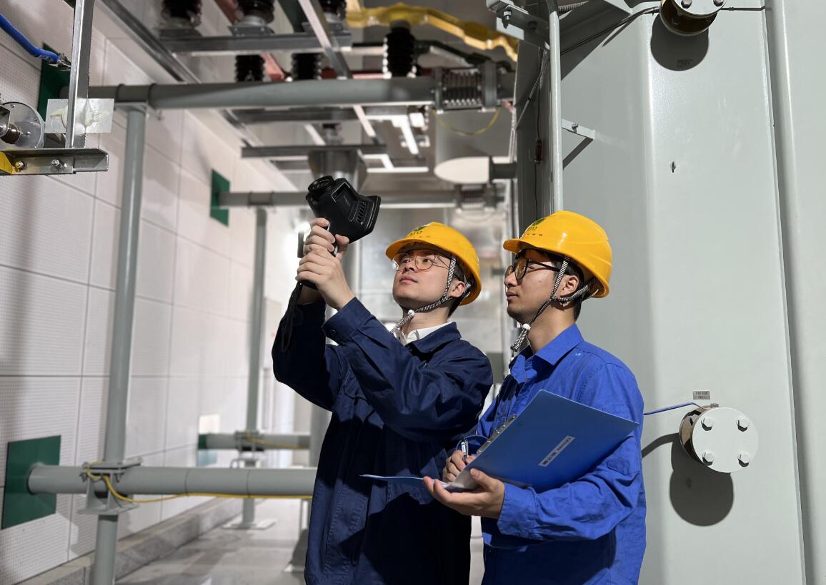 中國電力網(wǎng)訊(通訊員:史科揚(yáng))“1、2號(hào)主變運(yùn)行良好,油溫油位均在正常范圍內(nèi),紅外測(cè)溫正常,全站滅火器均在保質(zhì)期內(nèi)……”5月10日,余姚市宏宇輸變電工程公司巡視人員來到110千伏雙河變,仔細(xì)地對(duì)站內(nèi)設(shè)備進(jìn)行測(cè)溫體檢,為電網(wǎng)心臟“把脈問診”,全力保障電網(wǎng)安全可靠運(yùn)行。