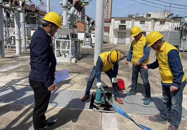 上午9時(shí),防汛演練模擬濉溪縣域遭受特大暴雨,變電站電纜溝出現(xiàn)積水,站內(nèi)自動(dòng)排水裝置無(wú)法滿足排水需求的狀況。濉溪縣供電公司運(yùn)維人員立即啟動(dòng)防汛預(yù)案,防汛小組成員第一時(shí)間從倉(cāng)庫(kù)搬運(yùn)兩臺(tái)水泵、沙袋、鐵鍬以及防雨布等工具趕到現(xiàn)場(chǎng)。到達(dá)現(xiàn)場(chǎng)后,運(yùn)維人員對(duì)變電站圍墻、排水溝、出水口進(jìn)行檢查清理。隨后迅速開啟防汛水泵進(jìn)行排水,并用沙袋封堵站內(nèi)大門及主控室大門,防止積水灌入危及設(shè)備安全,快速完成防汛演練每條項(xiàng)目。從檢查、匯報(bào)到故障隔離、排水處理等,整個(gè)模擬演練過(guò)程井然有序,達(dá)到了預(yù)期效果。