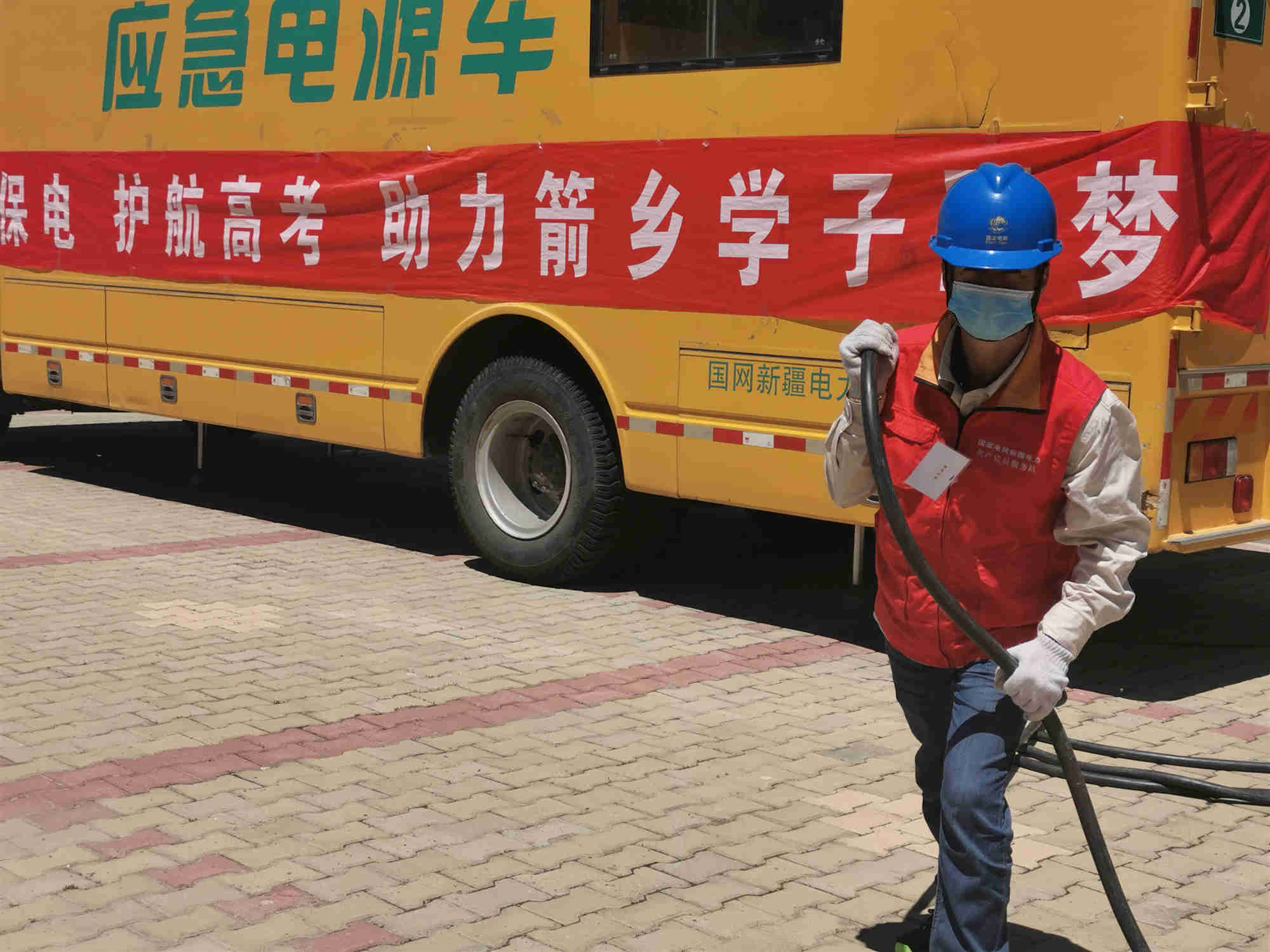 中國電力網訊 7月7日清晨6時,國網伊犁供電公司黨員服務隊員早早趕往轄區(qū)高考考點。到現場后兩人要對應急供電車輛和線路設備做最后的檢查,確??荚嚻陂g電力供應無憂。
