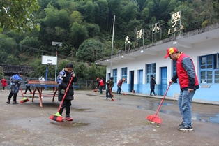 觀影結束后,隊員們帶領孩子們開展義務清潔鄉(xiāng)村環(huán)境活動,大家清掃了校園衛(wèi)生后,紛紛沿著村內(nèi)主要干道、巷道開始清理垃圾,通過一個小時的努力,將道路上的煙頭、塑料袋、枝葉等垃圾全部清掃干凈,整個鄉(xiāng)村煥然一新。