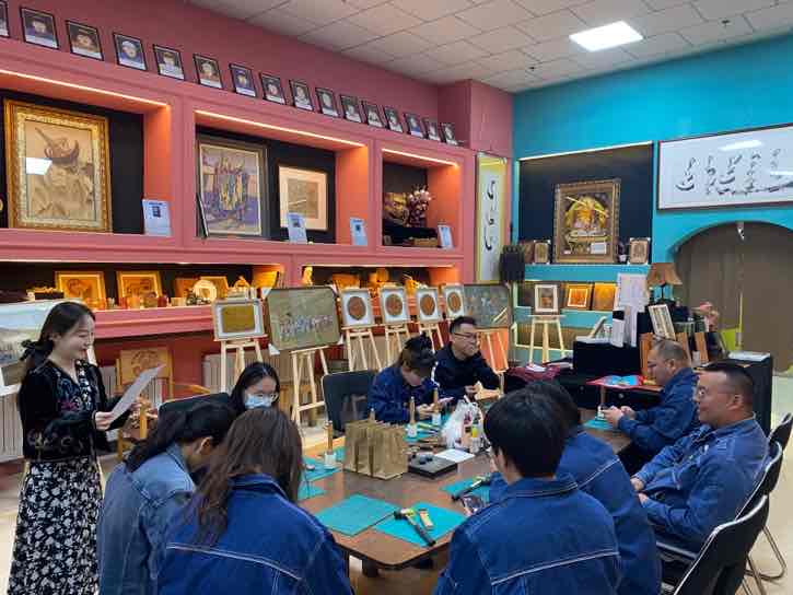本次活動(dòng)內(nèi)容豐富,黨員干部職工積極前往阿拉善盟非物質(zhì)文化遺產(chǎn)皮雕藝術(shù)傳承研究展示中心參觀并體驗(yàn)非遺文化皮雕技藝。首先,由阿拉善盟非物質(zhì)文化遺產(chǎn)傳承人“皮雕匠人”張浩老師向大家介紹皮雕技藝在阿拉善地區(qū)傳承發(fā)展的歷史以及在展的各種皮雕藝術(shù)品,并現(xiàn)場(chǎng)演示了皮雕制作的基本技法,緊接著帶領(lǐng)大家制作傳統(tǒng)皮質(zhì)鑰匙包。職工們熱情高漲,紛紛動(dòng)手操作,開料、刻線、描摹、染色、縫線,皮面和針線來(lái)回穿插,充分體驗(yàn)到了非遺的魅力和手作的樂趣,最后在緊張刺激的民族團(tuán)結(jié)知識(shí)問答題中結(jié)束了本次活動(dòng)。