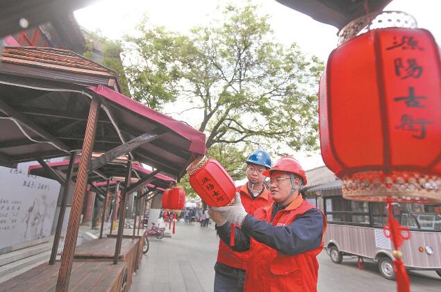 黨員服務(wù)隊(duì)隊(duì)員來(lái)到薊州古文化街檢查客戶(hù)用電線(xiàn)路和設(shè)備