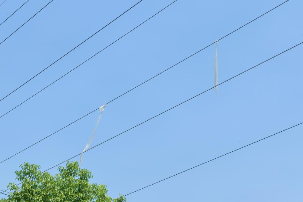 中國(guó)電力網(wǎng)訊 8月14日下午,國(guó)網(wǎng)余姚市供電公司公司輸配電運(yùn)檢中心員工巡視線路時(shí)發(fā)現(xiàn),在陸埠鎮(zhèn)工業(yè)園區(qū)35千伏洲車(chē)3825線23至24號(hào)塔之間的線路上有兩股異物纏繞,一旦連接兩根導(dǎo)線,極易引發(fā)線路跳閘,危及電網(wǎng)安全穩(wěn)定運(yùn)行。