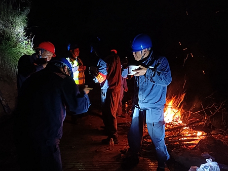 幾天前我到小灣供電所一個(gè)偏遠(yuǎn)的搶修現(xiàn)場(chǎng),因?yàn)橄掠甑脑?,搶修工作延遲到下午16時(shí)多才開(kāi)始,直到凌晨3點(diǎn)多結(jié)束。期間23時(shí)左右因大雨而工作暫停,大家才燒了壺水燙了個(gè)方便面墊了個(gè)底。
