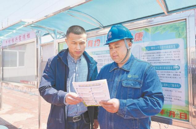 劉曉峰(右)向客戶宣傳安全用電知識(shí)。趙立民 攝