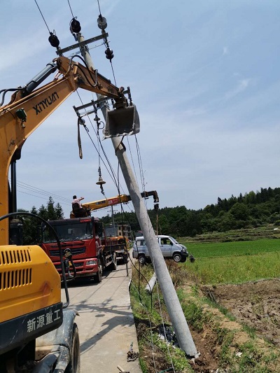 險情就是命令。敖溪供電所所長助理曾海林迅速組織搶修人員趕赴事故現(xiàn)場。7時25分,供電員工抵達現(xiàn)場,立即啟動突發(fā)事故搶修預(yù)案,并在現(xiàn)場 拉起了警戒線,避免車輛、行人靠近。確?,F(xiàn)場安全措施到位后,曾海林協(xié)調(diào)挖掘機、吊車等設(shè)備就位,準(zhǔn)備電桿、導(dǎo)線等施工材料,做好搶修前的各項準(zhǔn)備工作。