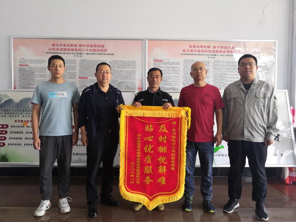 中國電力網(wǎng)訊  近日,金川供電分公司收到了來自呼和浩特市嘉融物業(yè)服務(wù)有限責(zé)任公司的致謝錦旗——“及時排憂解難貼心優(yōu)質(zhì)服務(wù)”,該物業(yè)公司的兩名工作人員作為代表向金川供電分公司迅速解決花樣年華小區(qū)停電故障表示感謝。
