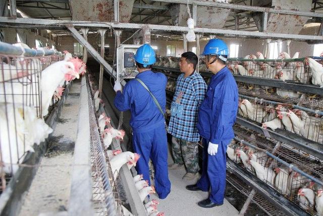 國(guó)網(wǎng)達(dá)州城區(qū)供電公司碑廟供電所工作人員正在興鳳養(yǎng)殖合作社雞場(chǎng)內(nèi)檢查線路。國(guó)網(wǎng)達(dá)州城區(qū)供電公司供圖