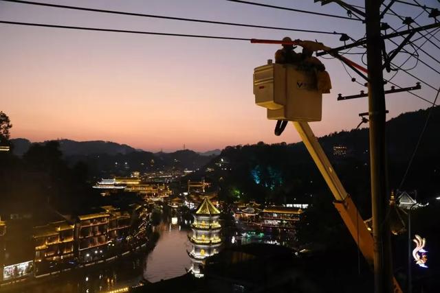 “每天晚上七點(diǎn)半,鳳凰古城的燈光會(huì)統(tǒng)一亮起,‘翠翠的水上婚禮’也會(huì)準(zhǔn)時(shí)在古城沱江中開(kāi)演,屆時(shí)來(lái)鳳凰游玩的旅客們都會(huì)聚集在兩岸觀看表演。”城北服務(wù)站站長(zhǎng)龍小明介紹,近兩年來(lái),鳳凰縣政府依托鳳凰古城的旅游優(yōu)勢(shì),大力推廣旅游業(yè)發(fā)展,通過(guò)全域亮化,將古城吊腳樓與夜景燈光緊密相結(jié)合,并打造出了“翠翠的水上婚禮”“燈光秀”等一系列觀賞項(xiàng)目。該公司積極對(duì)接古城用電需求,對(duì)原有的線(xiàn)路設(shè)備進(jìn)行升級(jí)改造,讓古城燈火更明,美景更甚。