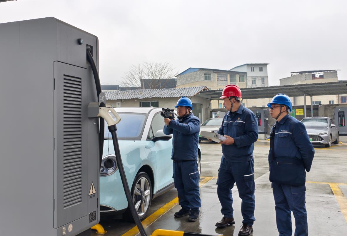 1月28日,也是大年除夕,德江迎來了出行高峰。南方電網(wǎng)貴州銅仁德江供電局城區(qū)供電所副所長陳彥和同事張權(quán)、張連輝來到德江縣晶時(shí)代充電站,對(duì)正在運(yùn)行使用的6個(gè)充電樁進(jìn)行全面“體檢”,確保設(shè)備正常運(yùn)轉(zhuǎn),為新能源汽車綠色出行提供充足可靠電力保障。