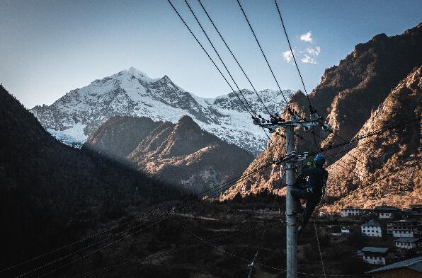 山風(fēng)撲面而來(lái),旺登感受到了些許涼意。半小時(shí)后,經(jīng)過(guò)桿上、桿下的協(xié)同作業(yè),入戶線成功更換。收拾好,他們又拎上工具箱,向村頭走去。