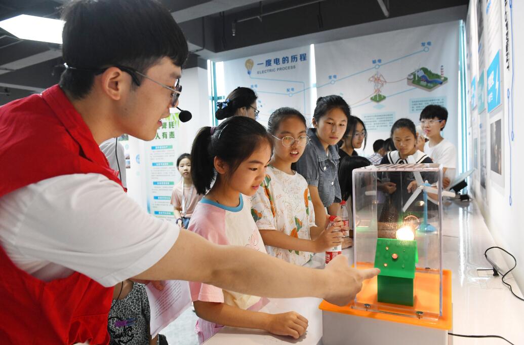 中國電力網(wǎng)訊 (通訊員 苗云夢)“小朋友們知道一度電是怎么來的嗎?”7月14日上午,在國網(wǎng)余姚市供電公司新時代文明實踐基地內(nèi),該公司大城小愛志愿者張楊歡正給近30名學(xué)生講解一度電的故事,帶領(lǐng)他們在學(xué)習(xí)探索中感受安全用電的重要性。