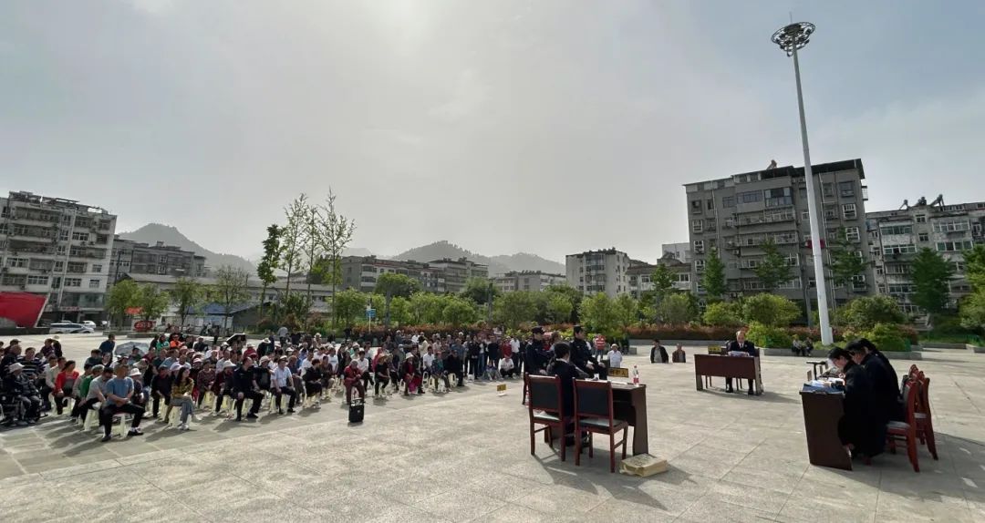 4月23日下午,十堰市張灣區(qū)人民法院環(huán)境資源審判合議庭將法庭搬至柏林鎮(zhèn)廣場(chǎng),現(xiàn)場(chǎng)開庭審理并當(dāng)庭宣判一起因架設(shè)電網(wǎng)捕獵野生動(dòng)物并致使一村民被電傷的刑事案件,來自柏林鎮(zhèn)各村委會(huì)干部、周邊村民、青年志愿者100余人現(xiàn)場(chǎng)旁聽。