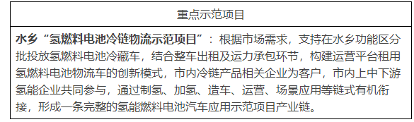 2.有序推進燃料電池汽車示范應用。以水鄉(xiāng)“氫燃料電池冷鏈物流示范項目”為推廣試點,支持市屬國有企業(yè)牽頭推動項目落地。以冷鏈物流車、環(huán)衛(wèi)車、重型牽引車等商用車應用為突破點和切入點,推進燃料電池汽車在港口、物流園區(qū)、重點產(chǎn)業(yè)園區(qū)等區(qū)域和長途貨運、城市配送、市政環(huán)衛(wèi)、城市建設等領(lǐng)域示范應用,打造大灣區(qū)氫能物流中心和綠色示范港口。