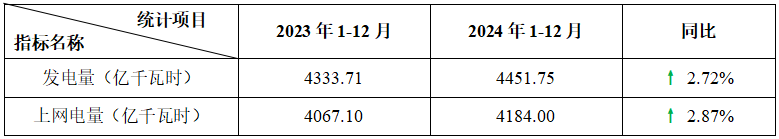 表2:2024年1-12月運行核電機組電力生產指標統(tǒng)計表