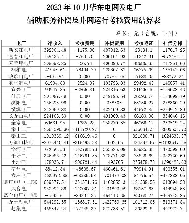 附件:2023年10-12月華東電網(wǎng)發(fā)電廠輔助服務(wù)補(bǔ)償及并網(wǎng)運(yùn)行考核費(fèi)用結(jié)算表。