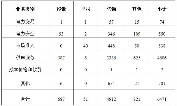 電力行業(yè)投訴舉報(bào)數(shù)量為738件,占全部投訴舉報(bào)數(shù)量的94.25%。反映的主要問(wèn)題有:一是部分地區(qū)受雷雨強(qiáng)風(fēng)等惡劣天氣影響導(dǎo)致故障停電,停電后修復(fù)周期較長(zhǎng);二是部分地區(qū)供電設(shè)施老舊,網(wǎng)架比較薄弱,供電半徑長(zhǎng)、線徑小,導(dǎo)致頻繁停電和低電壓;三是個(gè)別供電企業(yè)工作人員服務(wù)意識(shí)不強(qiáng),影響了群眾正常用電或者辦理涉電業(yè)務(wù);四是部分地區(qū)電力企業(yè)辦理承裝(修、試)電力設(shè)施許可證時(shí),使用非本企業(yè)員工證件,涉嫌提供虛假申請(qǐng)材料。