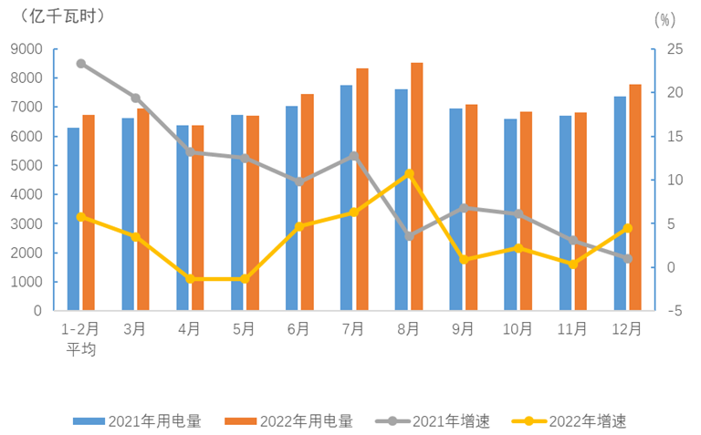 圖2 2021、2022年重點行業(yè)分月用電量情況