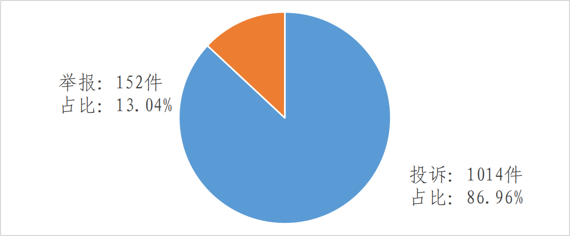2023年8月,12398熱線共接收投訴舉報1166件,環(huán)比下降11.40%、同比下降37.55%。其中:投訴1014件,環(huán)比下降11.75%、同比下降43.48%;舉報152件,環(huán)比下降8.98%、同比增長92.41%。
