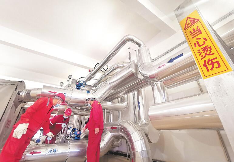 中國石油華北油田雄安分公司工作人員檢查0701地?zé)犴?xiàng)目設(shè)備運(yùn)行狀況。楊凱 攝
