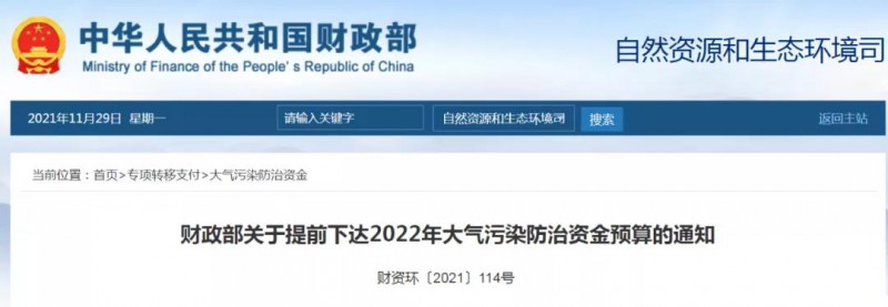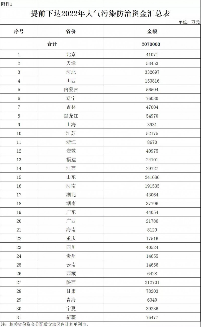 為支持大氣污染防治工作,促進大氣質量改善,現(xiàn)下達你省(自治區(qū)、直轄市,以下簡稱省)2022年大氣污染防治資金,用于支持開展減污降碳等方面相關工作,并就有關事項通知如下: