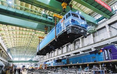 中車(chē)大同電力機(jī)車(chē)有限公司研制的全球氫燃料電池裝機(jī)功率最大的“寧東號(hào)”機(jī)車(chē)。 李冬賓 攝