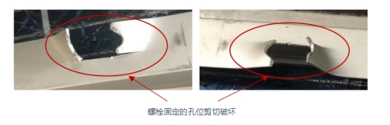 當(dāng)遭受大風(fēng)等外界壓力時(shí),組件的破壞都是從最薄弱點(diǎn)開(kāi)始的,即連接處的C面。這在兩家主流廠家的風(fēng)洞測(cè)試中,得到了同樣的驗(yàn)證結(jié)果:組件失效均為螺栓固定的孔位剪切破壞。因此,提高最薄弱點(diǎn)的承載力,是提高組件抗載荷能力最有效和最經(jīng)濟(jì)的方式。