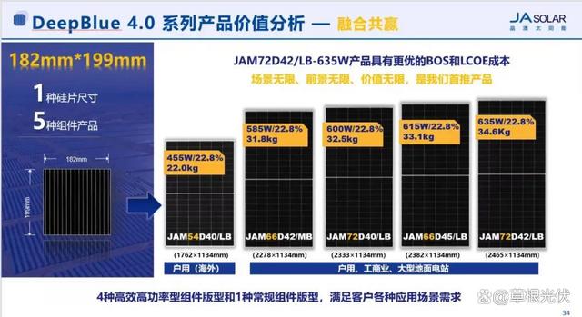 據(jù)晶澳產(chǎn)品技術(shù)總監(jiān)張軍介紹,n型72新版型(JAM72D42-635)與原先182-n-78版型尺寸相同,功率可高達(dá)635W,組件效率22.8%,是目前行業(yè)182系列產(chǎn)品中功率最高的產(chǎn)品。另外,較原78版型產(chǎn)品Voc降低7.6%,熱斑可靠性更優(yōu);系統(tǒng)端單串組件數(shù)量增加,BOS成本更低。