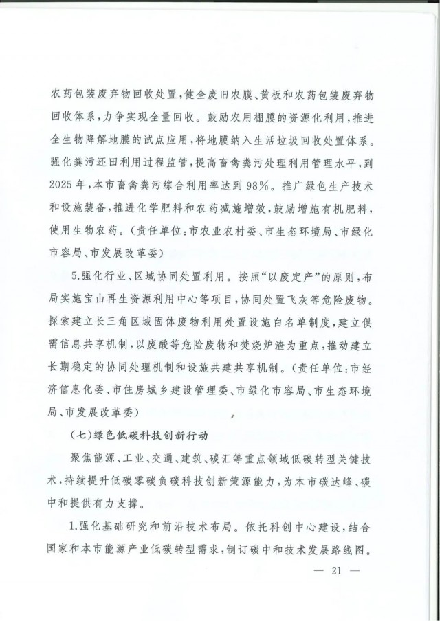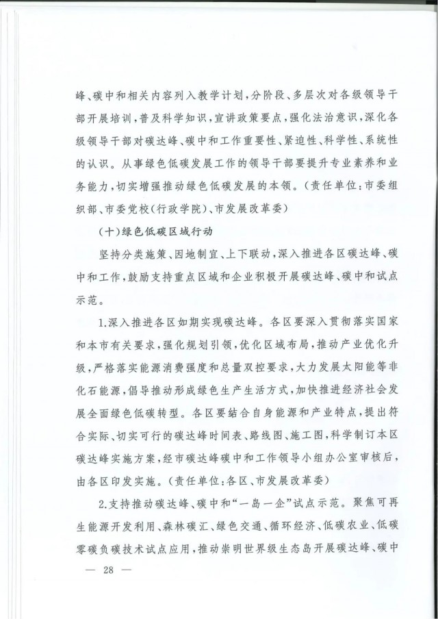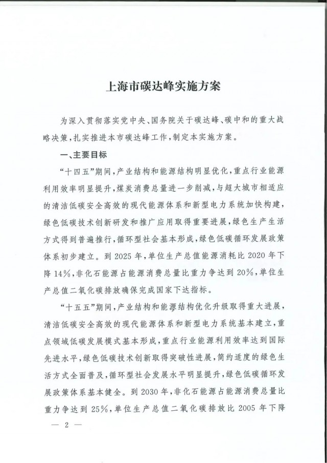近日,上海市人民政府辦公廳印發(fā)了《上海市碳達峰實施方案》?!斗桨浮访鞔_主要目標:到2025年,單位生產總值二氧化碳排放確保完成國家下達指標。到2030年單位生產總值二氧化碳排放比2005年下降70%,確保2030年前實現碳達峰。并計劃組織實施“碳達峰十大行動”,包括能源綠色低碳轉型行動、節(jié)能降碳增效行動、工業(yè)/城鄉(xiāng)建設/交通領域綠色低碳行動、循環(huán)經濟助力降碳行動、綠色低碳科技創(chuàng)新行動、碳匯能力鞏固提升行動、綠色低碳全民行動、綠色低碳區(qū)域行動。