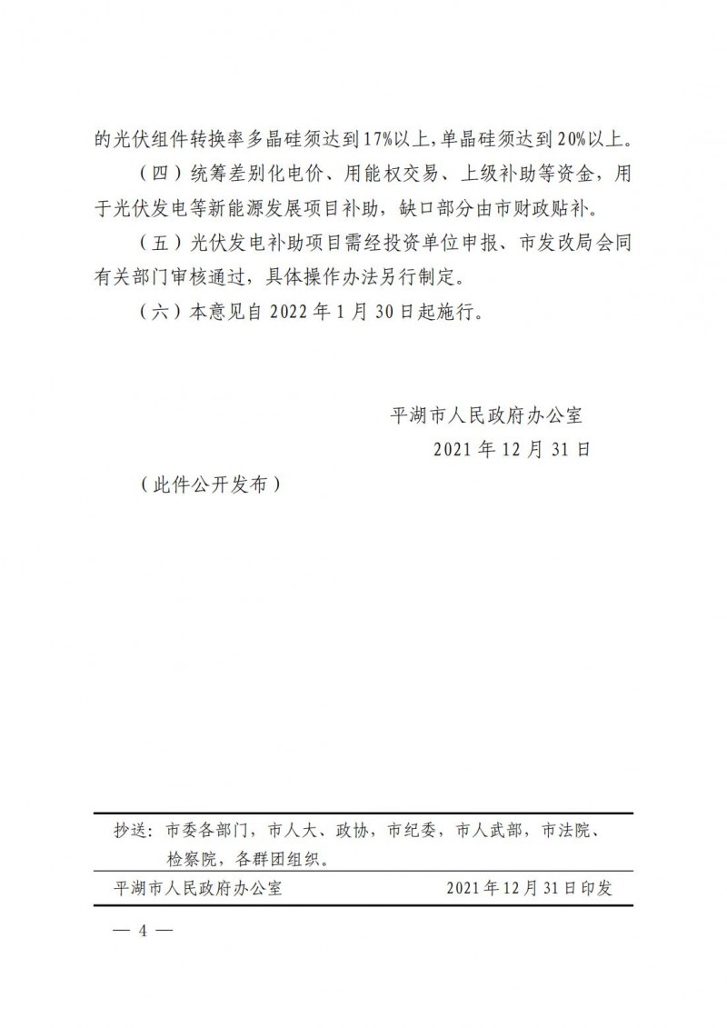 1月11日,平湖市人民政府發(fā)布了關(guān)于新一輪鼓勵(lì)光伏發(fā)電項(xiàng)目建設(shè)的若干意見。明確到“十四五”末,平湖市光伏發(fā)電裝機(jī)容量達(dá)到600兆瓦以上,實(shí)際新增200兆瓦以上,年平均新增裝機(jī)容量在40兆瓦以上。