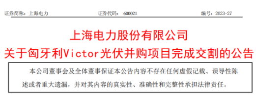 近日,公司全資子公司羲和新能源發(fā)展有限公司已完成匈牙利Victor光伏項目100%股權(quán)的交割手續(xù),最終交易對價約3700萬歐元(約2.7億元人民幣)。匈牙利Victor項目資產(chǎn)包含2家項目公司,總裝機容量約13.2萬千瓦。項目預計于2023年開工,計劃于同年并網(wǎng),投產(chǎn)后預計年發(fā)電量約1億千瓦時。