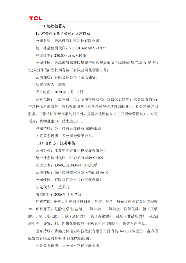 7月7日,TCL科技發(fā)布公告稱,今年4月與協(xié)鑫集團(tuán)有限公司及關(guān)聯(lián)方簽訂《合作框架協(xié)議書(shū)》,就投資新建光伏級(jí)和電子級(jí)硅料項(xiàng)目開(kāi)展合作。