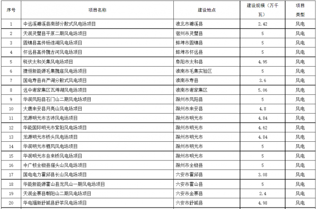 安徽省能源局關(guān)于擬收回建設(shè)規(guī)模的風(fēng)電和光伏發(fā)電項(xiàng)目(第一批)的公示
