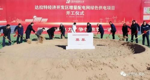 儀式上,與會人員共同為達拉特經(jīng)濟開發(fā)區(qū)增量配電網(wǎng)綠色供電項目奠基培土。