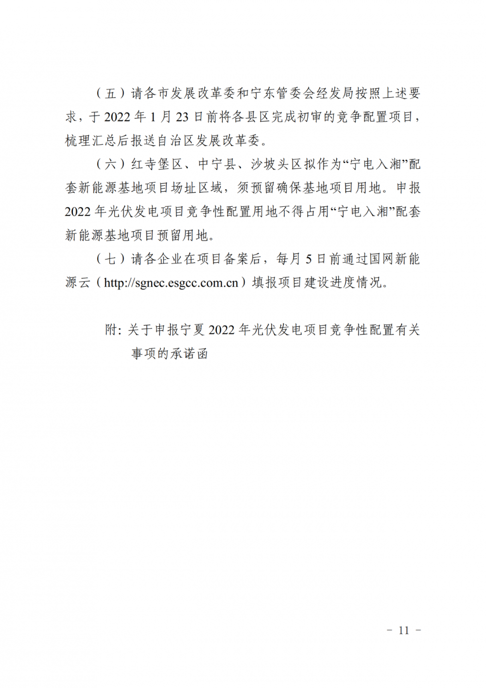 紅寺堡區(qū)、中寧縣、沙坡頭區(qū)擬作為“寧電入湘”配套新能源基地項目場址區(qū)域,須預(yù)留確保基地項目用地。申報2022年光伏發(fā)電項目競爭性配置用地不得占用“寧電入湘”配套新能源基地項目預(yù)留用地。