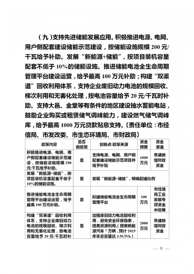 文件明確,支持可再生能源和氫能發(fā)展利用。有序退出生活垃圾填埋,鼓勵生活垃圾、秸稈等生物質(zhì)發(fā)電,給予投資補貼和運營補貼。合理調(diào)配水資源,支持水電企業(yè)增大發(fā)電總量、提高供電質(zhì)量。支持分布式光伏試點示范,按裝機容量給予最高300萬元、按發(fā)電量給予最高1000萬元補助。加快建設(shè)“綠氫之都”,統(tǒng)籌推進(jìn)“制儲輸用”全鏈條發(fā)展,引進(jìn)電解水制氫龍頭企業(yè),市區(qū)兩級聯(lián)動給予0.15-0.2元/千瓦時的電費支持;加快加氫站規(guī)劃建設(shè),最高給予1500萬元建設(shè)運營補助。