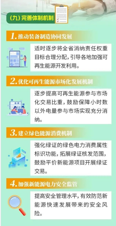 ——可再生能源電力消納目標(biāo)。2025年,全省可再生能源電力總量消納責(zé)任權(quán)重達(dá)到32.2%以上,可再生能源電力非水電消納責(zé)任權(quán)重達(dá)到25.9%以上,可再生能源利用率保持在合理水平。