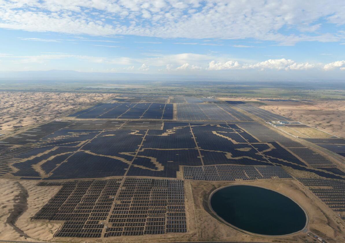 鄂爾多斯市達拉特旗一期光伏電站利用19.6萬塊光伏板拼接成的“駿馬圖形電站”已獲得吉尼斯世界紀錄認證。(來源:鄂爾多斯市委宣傳部)