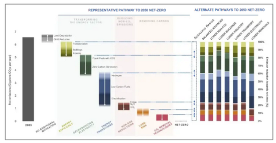 根據(jù)拜登政府所制定的計(jì)劃,要在2050年前實(shí)現(xiàn)凈零排放,需要通過在大部分經(jīng)濟(jì)領(lǐng)域中改用清潔能源——電力實(shí)現(xiàn)運(yùn)行,包括汽車、建筑和工業(yè)流程;此外,還需要提高能源效率并擴(kuò)大使用從大氣中提取二氧化碳的技術(shù)。