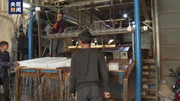記者來到這家位于巴格達(dá)市郊的私營制冰廠,老板穆斯塔法·納賈爾正在修理他壞掉的機(jī)器。由于巴格達(dá)市民購買冰塊的需求飆升,現(xiàn)在他的工廠每天會生產(chǎn)500塊冰塊,每塊售價1.25美元(約合人民幣9元)。