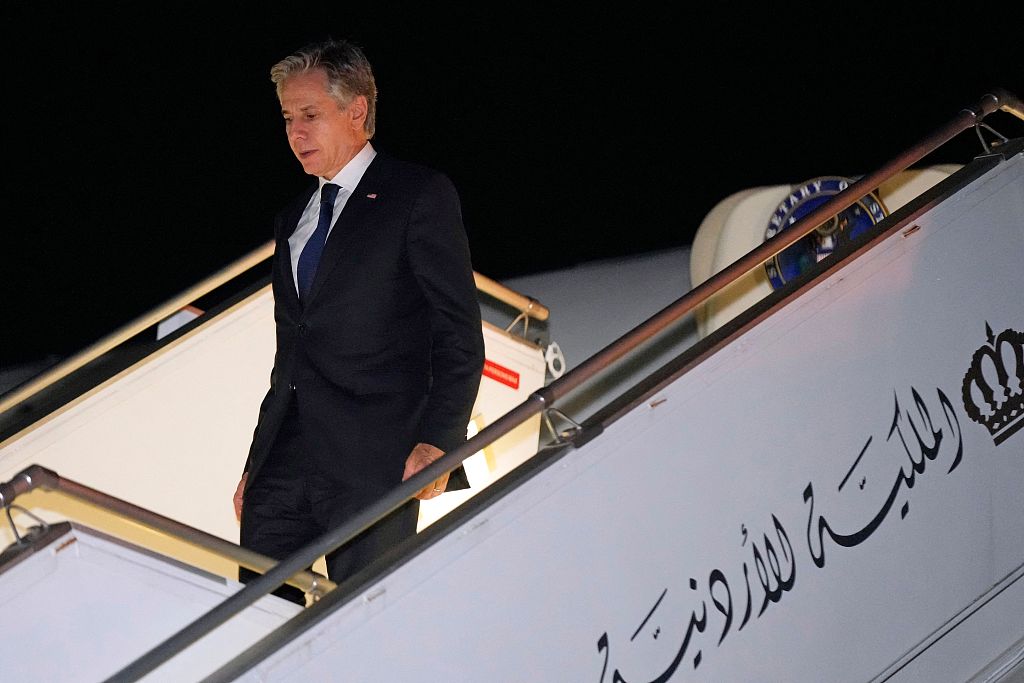 當(dāng)?shù)貢r(shí)間2023年10月17日,約旦安曼,美國國務(wù)卿安東尼·布林肯走下飛機(jī)。