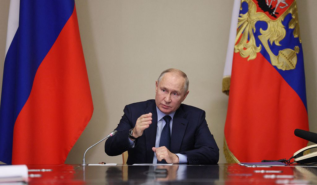 當(dāng)?shù)貢r(shí)間2023年10月16日,俄羅斯莫斯科,總統(tǒng)普京主持會議,討論俄烏沖突及巴以沖突。