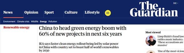 根據(jù)國際能源署的數(shù)據(jù),從現(xiàn)在到2030年,中國的可再生能源裝機(jī)容量預(yù)計(jì)將占全球總裝機(jī)容量的近60%。到2030年,中國將擁有全球一半以上的可再生能源。